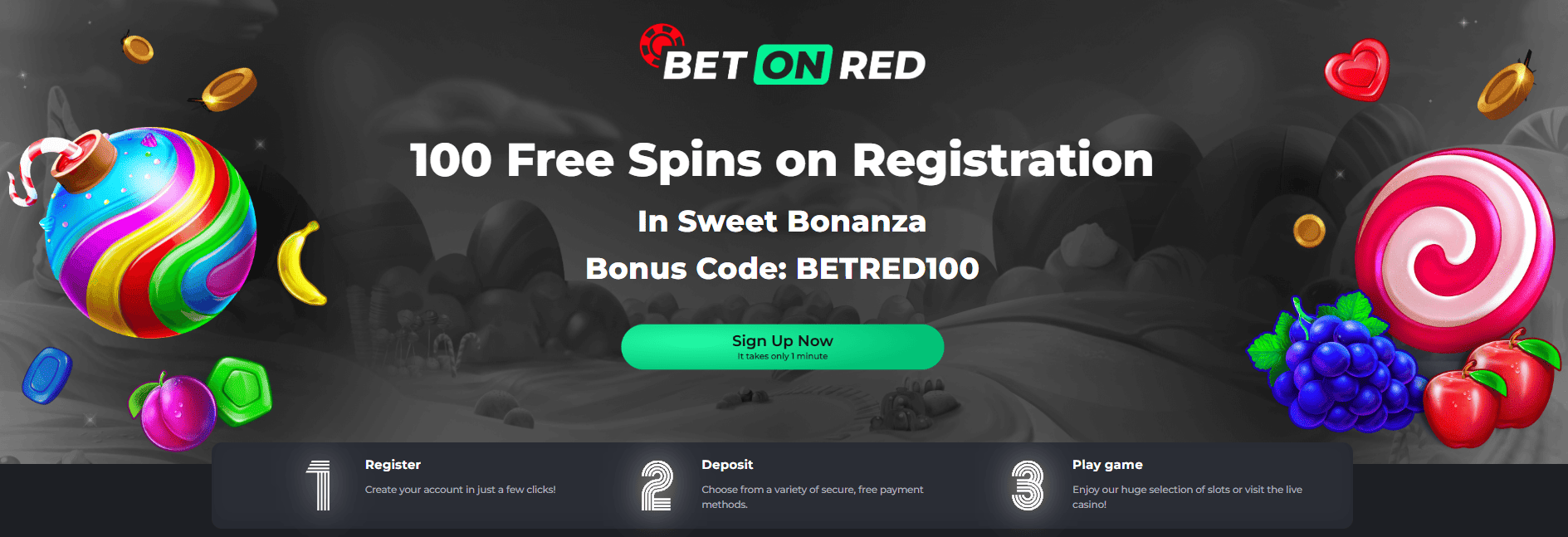 Poniżej, korzystając z naszego doświadczenia, przygotowaliśmy szczegółową instrukcję jak odebrać bonus w postaci 100 darmowych spinów za rejestrację na przykładzie BetOnRed. Zasady są podobne we wszystkich kasynach.